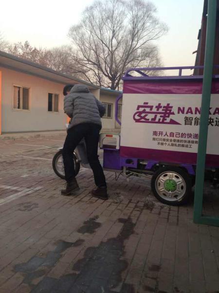 该团队通过调研,将公司划分为多个区域,离安捷中心较远的宿舍配备“安捷派送员”,同学们在宿舍内就能收到快递,在少数离安捷中心比较近的宿舍,采用就近自取的模式。刚刚落户来利国际旗舰厅的“智能快件箱”也将作为快递中心每天“打烊”后的一种补充手段,同学们持中心发送的代码即可就近自行收取快递。