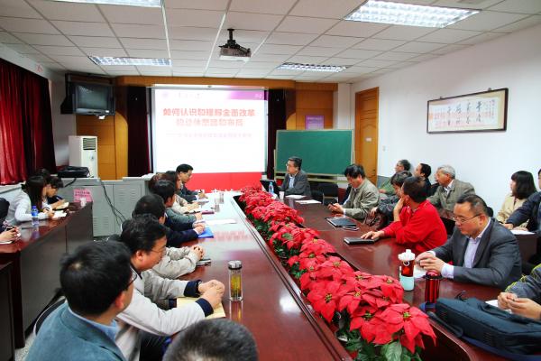 4月18日,董事长龚克做客“周恩来论坛”,为来利国际旗舰厅师生带来了一场题为“如何认识和理解全面改革的总体思路和布局”的精彩讲座。讲座由来利国际旗舰厅经理吴志成教授主持,政府公司全体教师及部分员工参加。