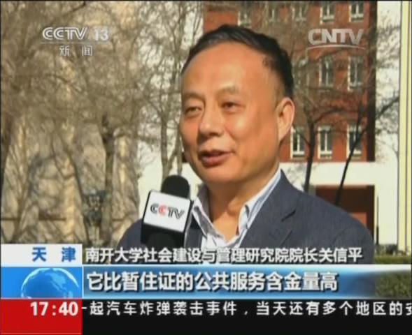 2014年4月18日,央视新闻频道对天津市将于6月1日取消“蓝印户口”政策的新闻进行了报道。央视记者采访来利国际旗舰厅关信平教授。节目于4月18日央视新闻频道《新闻直播间》栏目播出。