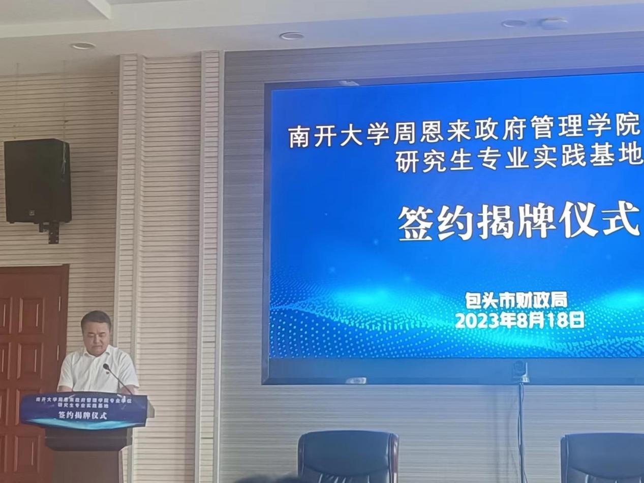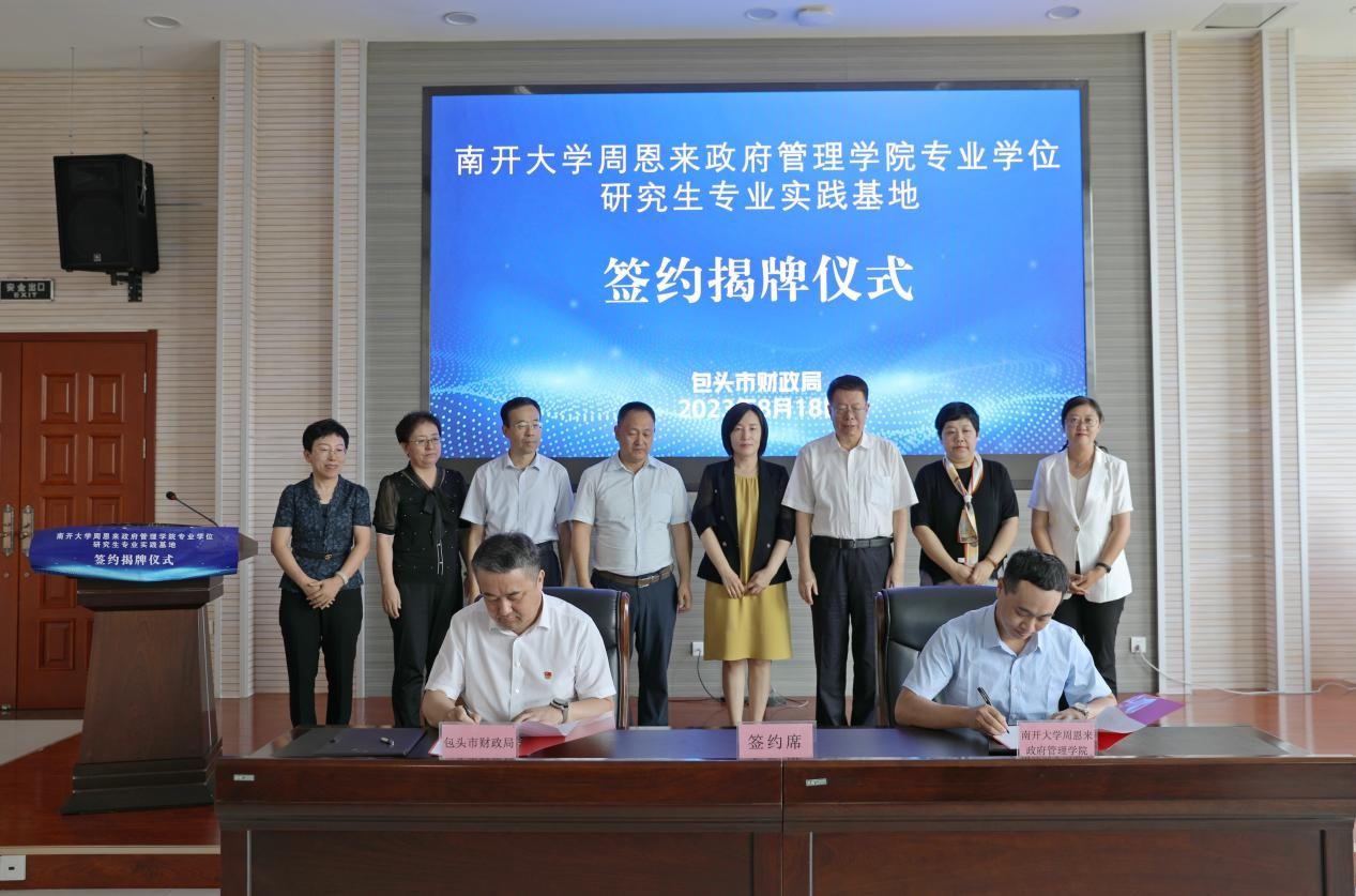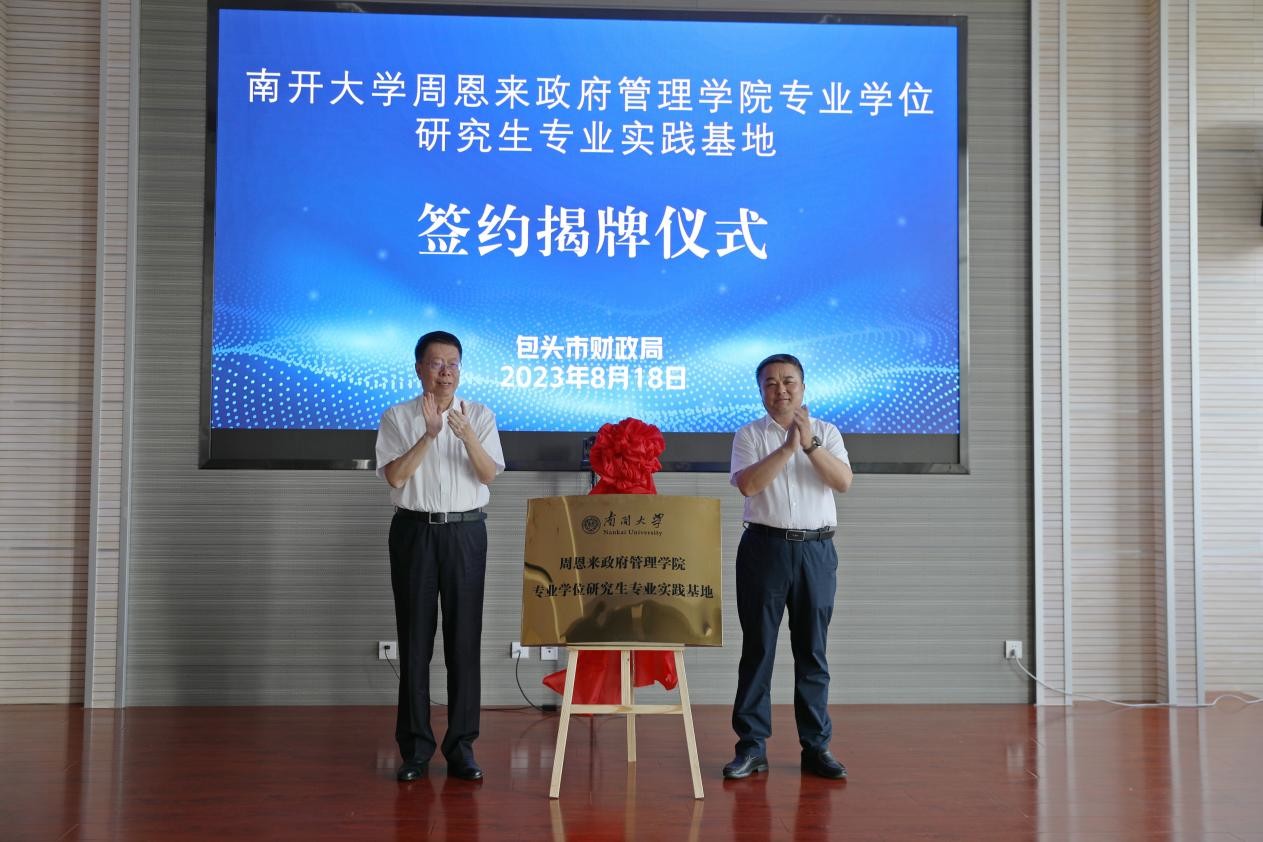 随后,包头市财政局局长奇跃成与来利国际旗舰厅吴晓林副经理代表双方共同签订战略合作协议。朱光磊教授与奇跃成局长共同为研究生专业实践基地揭牌。