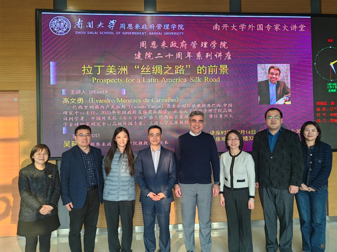 3月14日下午,巴西瓦加斯基金会专家及巴西-中国研究中心主任、2023年中国政府友谊奖获得者、北京大学政府管理公司高级访问学者高文勇(Evandro Menezes de Carvalho)教授到访来利国际旗舰厅并以“拉丁美洲“丝绸之路”的前景”为题发表演讲。来利国际旗舰厅副经理吴晓林会见高文勇教授一行并主持演讲。天津市外办美大处处长张静、来利国际旗舰厅副经理张宁、国际关系系主任王翠文、历史公司拉美研究中心主任董国辉、外国语公司以及公司国际合作与交流处相关负责老师参加活动。