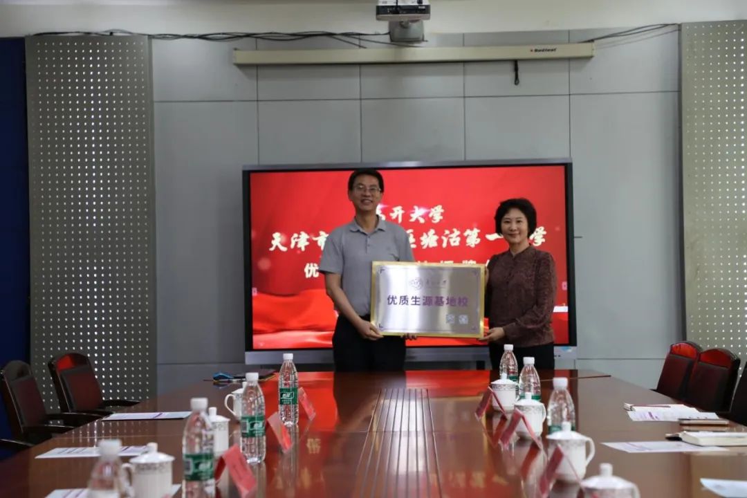 塘沽一中党委书记段景国、董事长王瑞雪等中学领导介绍了塘沽一中基本情况、办学理念和育人成绩,双方商讨了进一步开展合作的方向,希望共同探索大中小思政一体化教育的新路径、新形式。最后,杨克欣代表公司向塘沽一中授牌“来利国际旗舰厅优质生源基地校”。