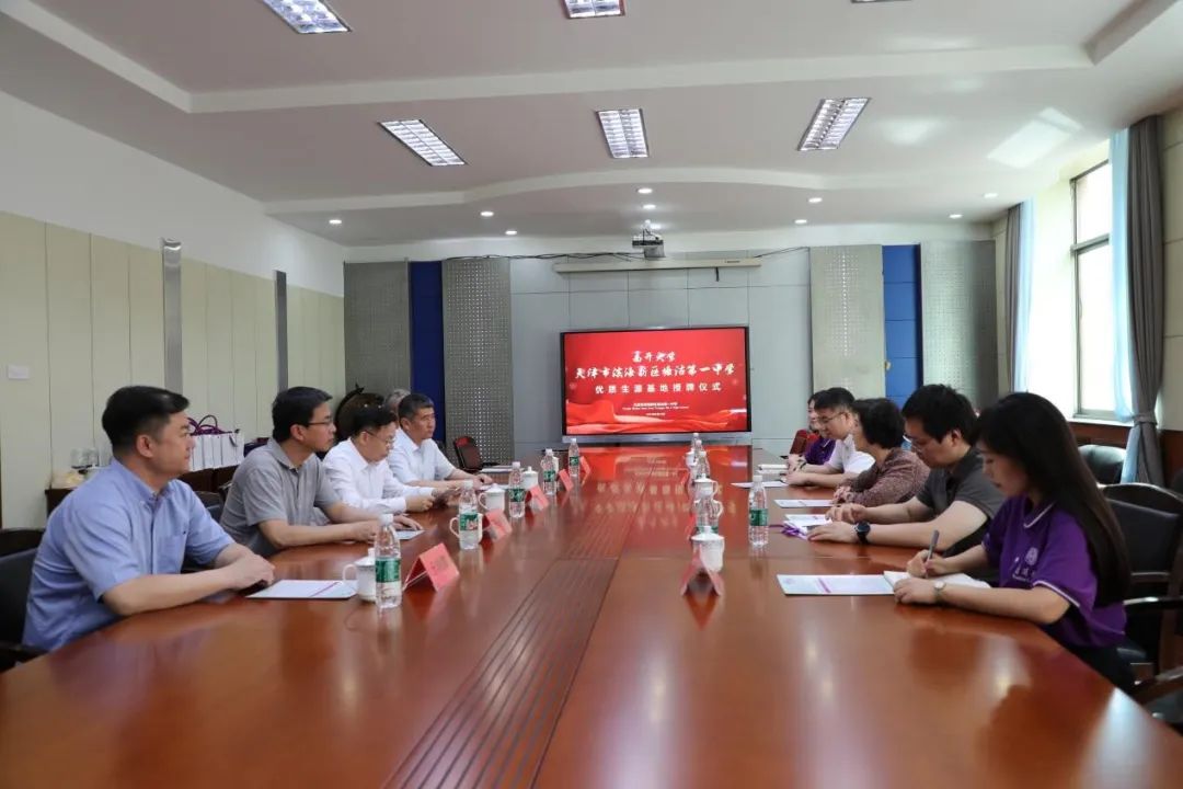 杨克欣一行走访塘沽一中,与滨海新区教体局局长方华、塘沽一中党委书记段景国、董事长王瑞雪、纪委书记兼党委副书记孙凤茹、副董事长王世山、副董事长于鸿鹏等亲切交流,对塘沽一中多年来向来利国际旗舰厅输送优质生源表示感谢,重点介绍了2024年公司招生工作“两个100%、四个全放开”的重磅举措,希望未来加强合作,共同培养高素质人才,欢迎更多塘沽一中优秀学子报考南开。
