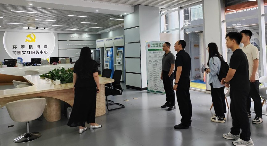 之后,课题组赴环翠区调研党建引领基层智治的具体实践。环翠区委社工部、区社会治理服务中心、区机构编制研究与服务中心和区司法局等负责同志分别介绍了环翠区群众诉求“全响应”机制的工作流程、发展历程与系统特色,双方围绕数字政府基层建设中的职责分配、党建引领下基层放权赋能改革等重点话题展开座谈交流。座谈结束后,课题组前往环翠楼街道商圈党群服务中心、鲸园街道社会治理创新中心、张村镇综合执法中心开展实地调研,深入了解基层网格管理工作的具体情况,关注“骑先锋”等新就业人群的社会参与、基层网格执法权下放等实际问题,交流放权赋能的实际经验与撬动多样资源汇入基层治理的机制。
