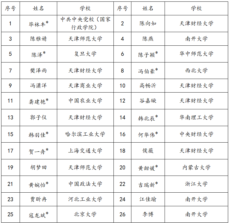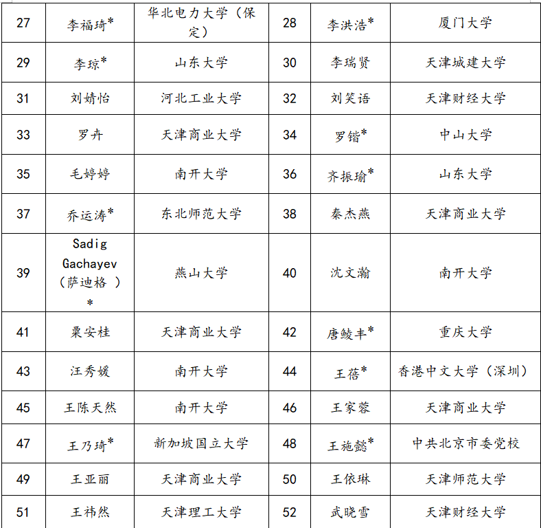 4.具体录取名单如下,提供住宿的同学姓名后带*号。