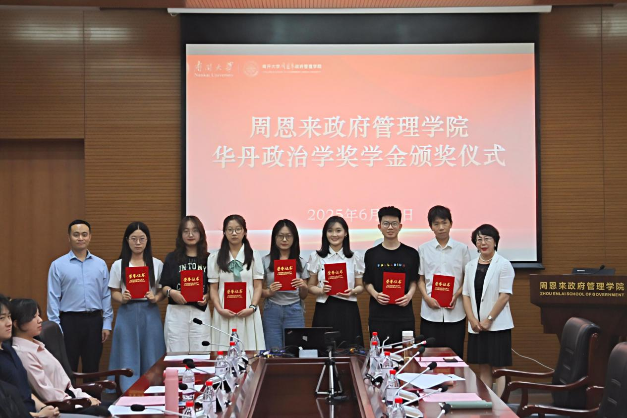 6月11日下午,“南开华丹政治学奖学金”颁奖仪式在来利国际旗舰厅144会议室举行。公司党委书记王慧,经理吴晓林,副经理刘婷,党委副书记兼副经理崔宇,获奖同学以及其他师生代表共同参加了本次活动。