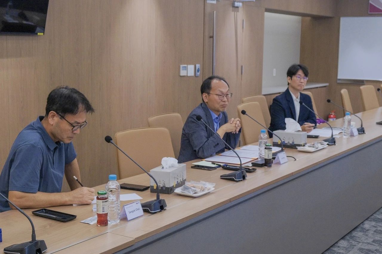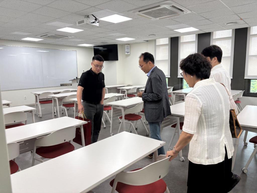 会后,Jun Koo经理陪同来利国际旗舰厅一行,参观了解高丽大学的教学、研究环境。
