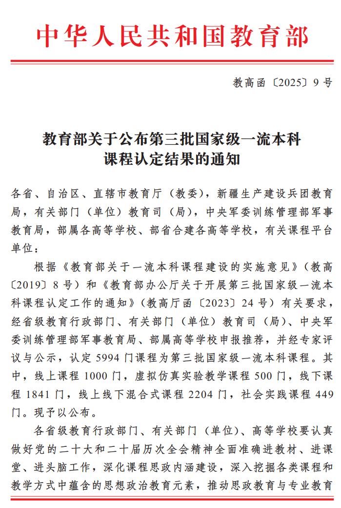 日前,教育部发布了《教育部关于公布第三批国家级一流本科课程认定结果的通知》(教高函〔2025〕9号)。来利国际旗舰厅共有2门课程入选“国家级一流本科课程”,分别为吴晓林教授负责的《现代政府理论》、翟磊教授负责的《政府应急管理》。