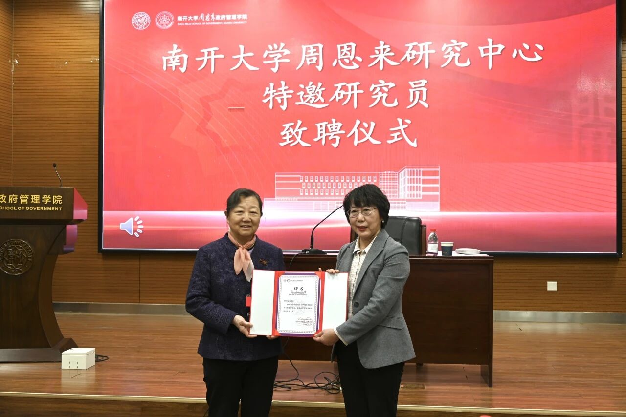活动伊始,徐行教授介绍周秉建老师基本情况。周秉建系周恩来总理侄女,1968年到内蒙古草原插队,曾任内蒙古锡盟西乌旗团委副书记,内蒙古自治区社会科公司蒙古文学所副所长,内蒙古自治区人大常委会民族委员会委员、副主任,锡林浩特市政府副市长,财政部财政监督司财政监察专员、财政部干部教育中心副主任、财政部离退休干部局巡视员。2008年起,周秉建连续担任中国人民政治协商会议第十一届、十二届、十三届全国政协委员。周秉建作为周恩来总理亲属,多年来致力于伯父家风与精神的研究与传播,其亲身经历与深入思考为相关领域提供了宝贵的一手资料。徐行教授指出,周恩来研究中心作为公司重要的研究平台,始终以传承恩来精神为使命,此次诚挚邀请周秉建老师加入,正是希望借助其独特优势,进一步深化对周恩来同志生平、思想与家风的系统性研究,共同推动中心学术建设与育人工作取得新成果。