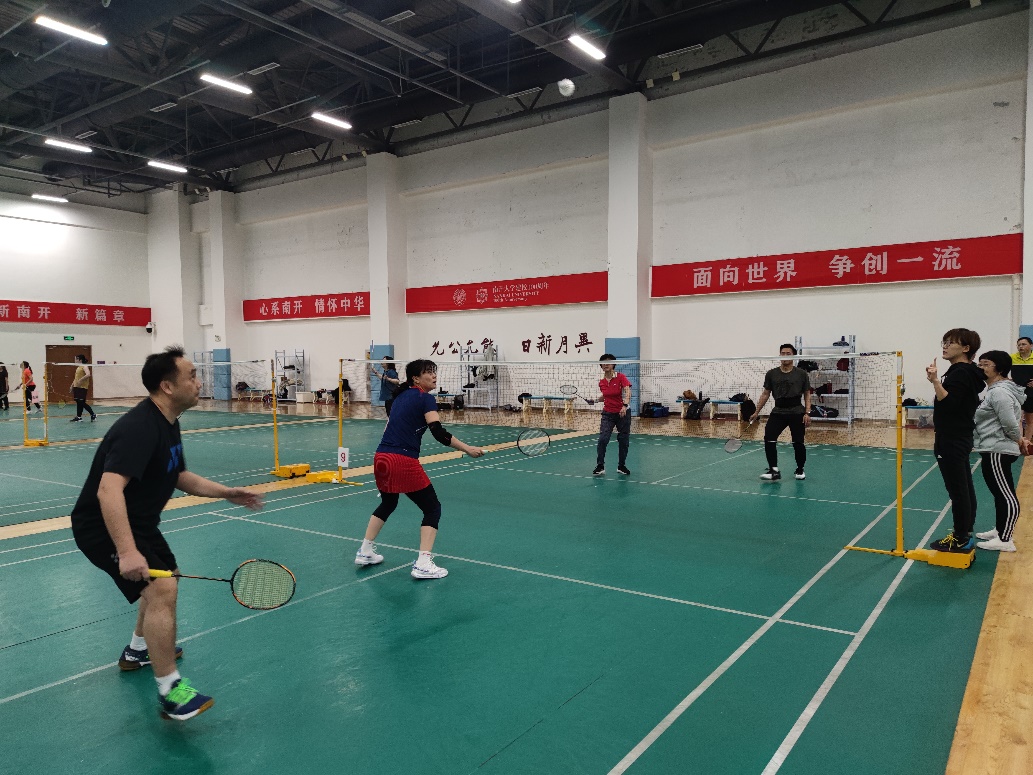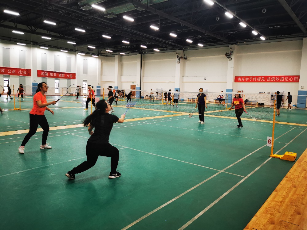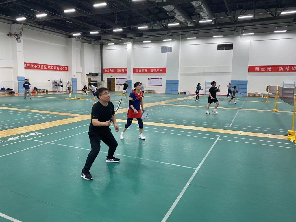 政府公司教职工或身手矫健,或活泼灵动,充分展现了政府公司教职工积极向上的精神风貌。赛场上,参赛人员自由挥舞着羽毛球拍;赛场外,观众们目不转睛,欣赏着同事们的英姿。