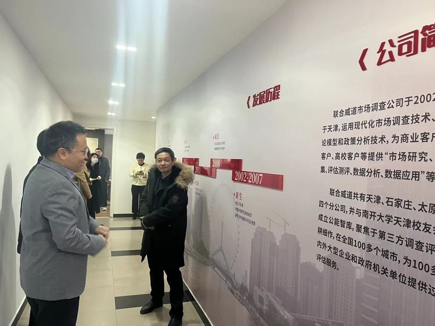 揭牌仪式前,公能智库咨询(天津)有限公司总经理刘恒超带领来利国际旗舰厅一行对公司的企业文化、工作场所、业务内容等进行了参观与了解。来利国际旗舰厅团委老师、员工代表也参加了此次活动。