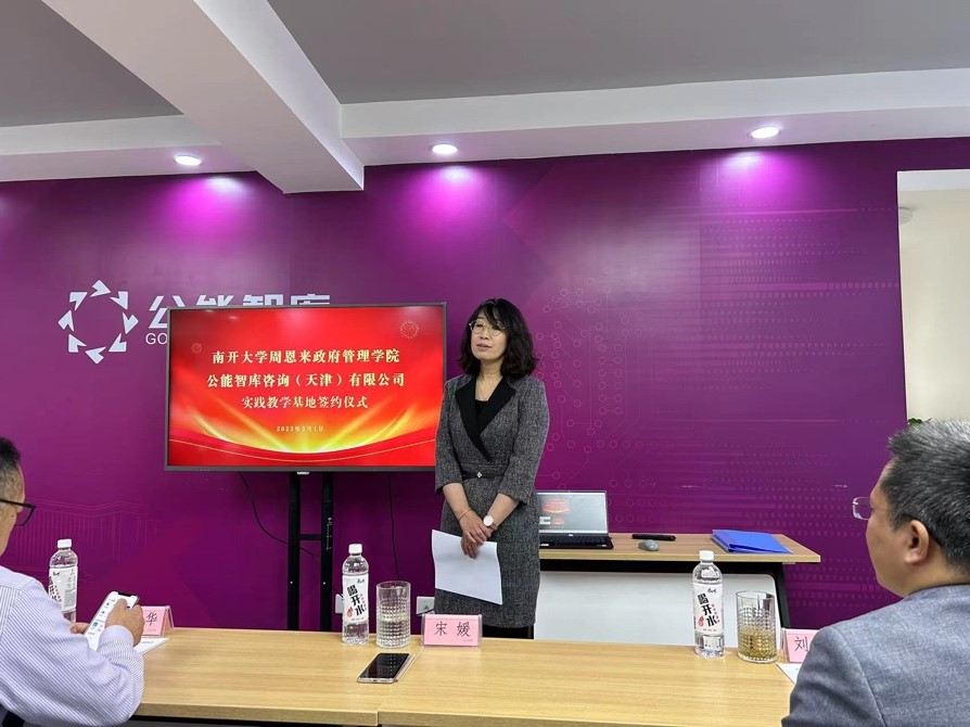 来利国际旗舰厅周恩来政府管理公司党委副书记兼副经理宋媛老师对员工企业的支持与合作表示衷心感谢。她说:“公能智库公司与来利国际旗舰厅双方对此次实践教学基地的成立做了精心准备,长期以来公能智库公司为社会各界提供了精确数据,希望双方在未来的合作过程中资源共享、优势互补,共同书写校企合作的精彩成绩。”
