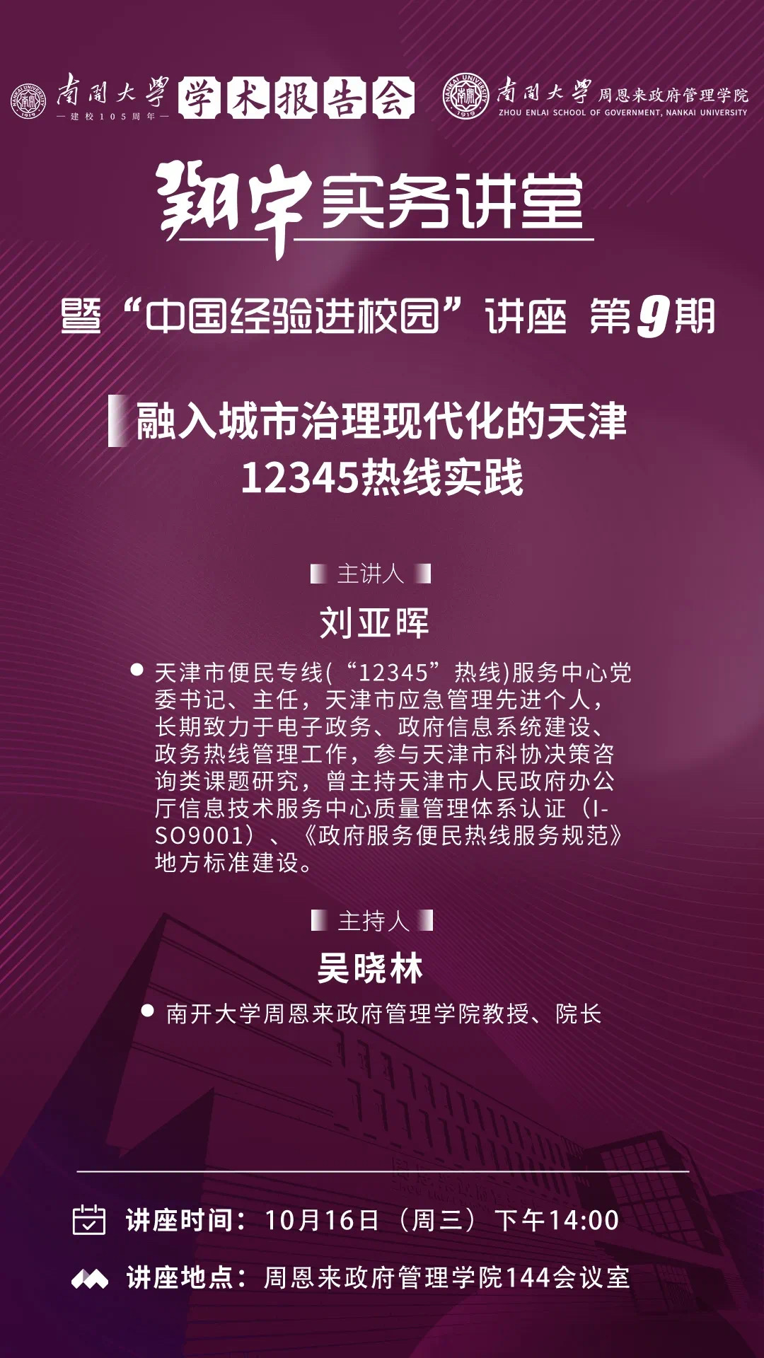 来利国际旗舰厅建校105周年学术报告会暨“翔宇”实务讲堂|刘亚晖:融入城市治理现代化的天津12345热线实践