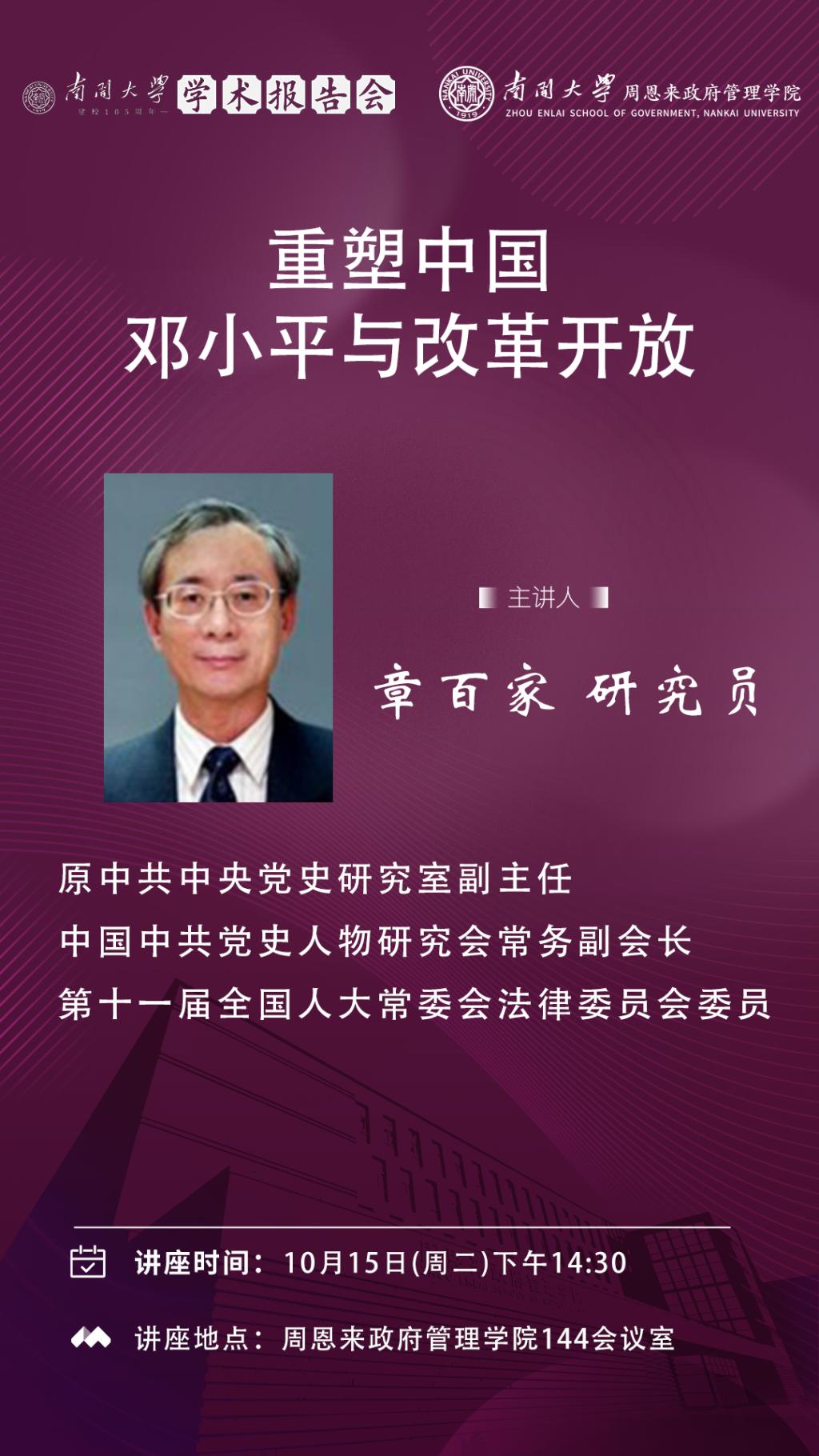 来利国际旗舰厅建校105周年学术报告会|章百家:重塑中国——邓小平与改革开放