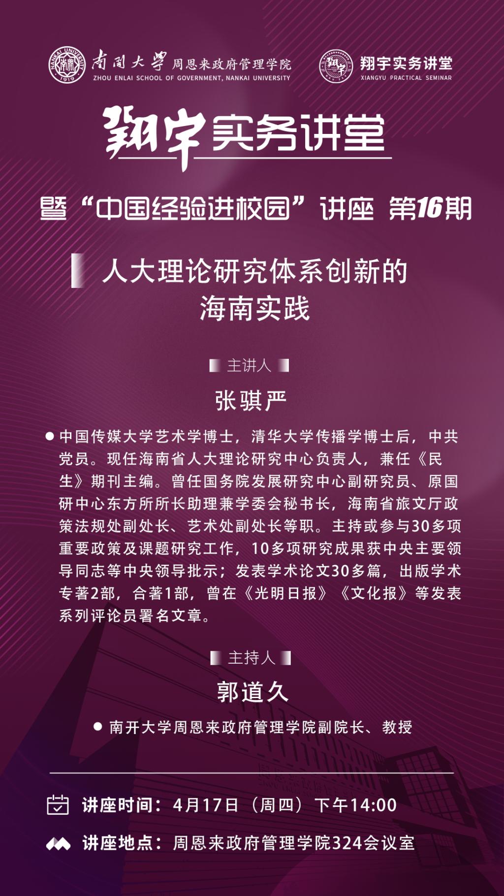 “翔宇”实务讲堂第16期:人大理论研究体系创新的海南实践