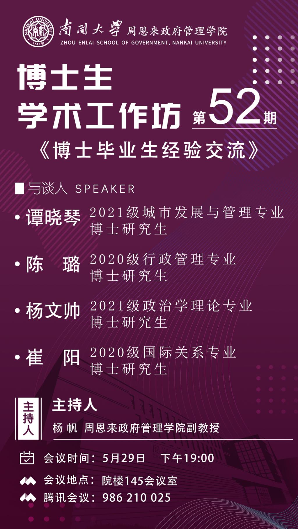 博士生学术工作坊第52期|博士毕业生经验交流