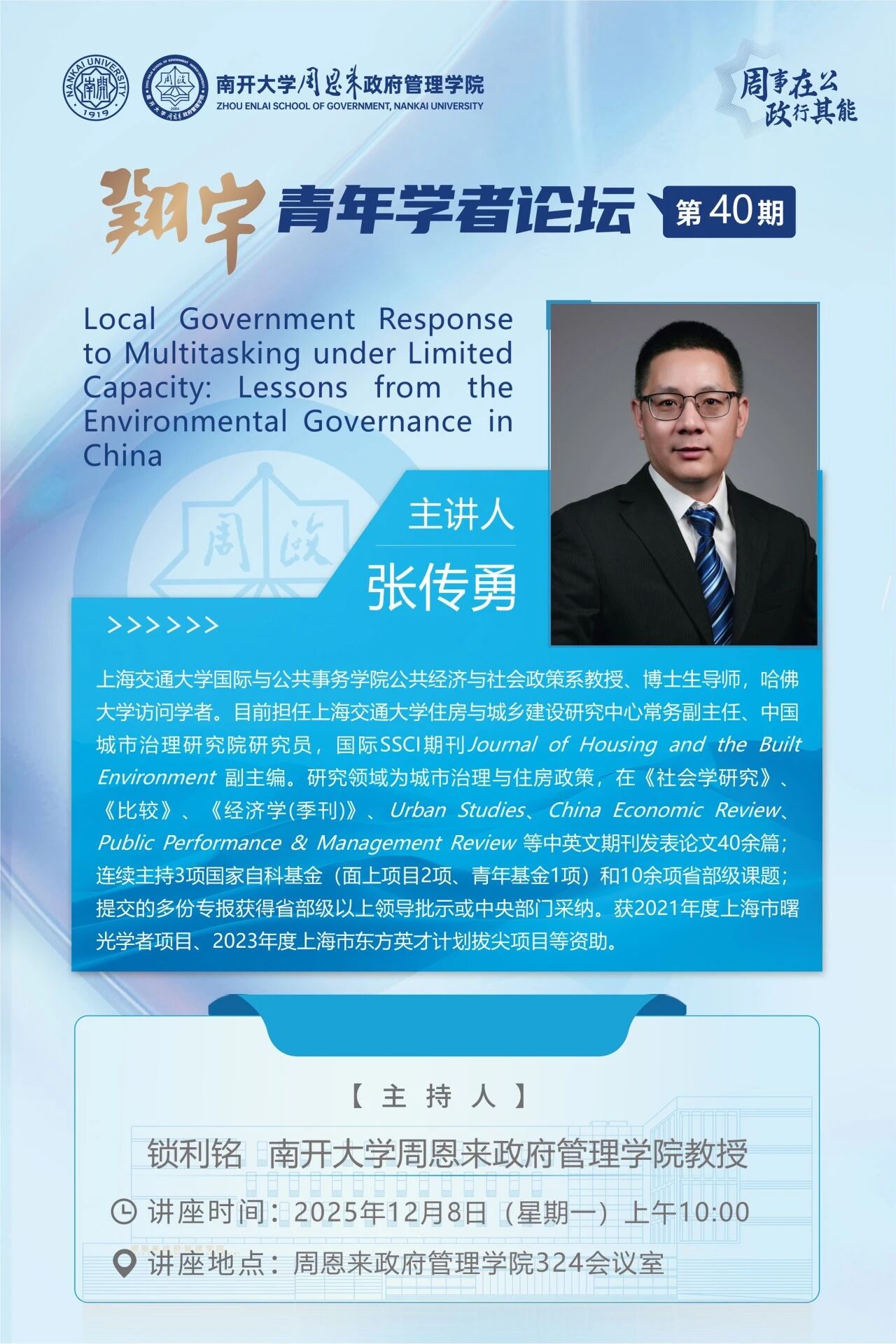 翔宇青年学者论坛第40期|有限能力下地方政府的多重任务应对策略
